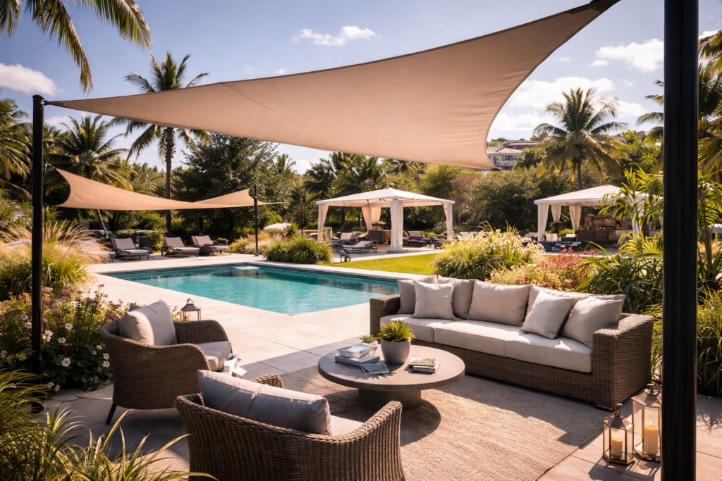 Modern outdoor shade built for Mauritius’ climate.